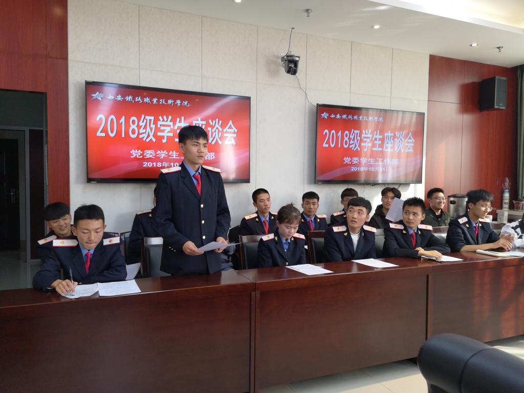 10月31日下午,学院党委学生工作部召开2018级学生交流座谈会。会议由党委学生工作部学生教育管理科科长冯晓斌主持,党委学生工作部各科室老师及40名2018级新生代表参加本次座谈会。会议围绕学生关心的学生管理、住宿伙食、课外生活、资助政策、心理健康教育活动、整治“三项不文明”活动、晚自习管理等十二个方面进行交流。