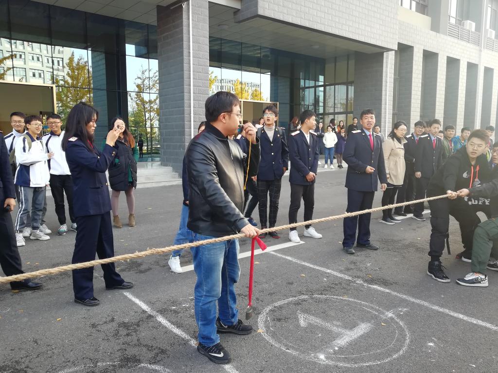 一场拔河比赛拉开了运动会的帷幕,在同学们的加油呐喊助威声中,动车组检修1703班和铁道车辆1801取得了第一场比赛的胜利。