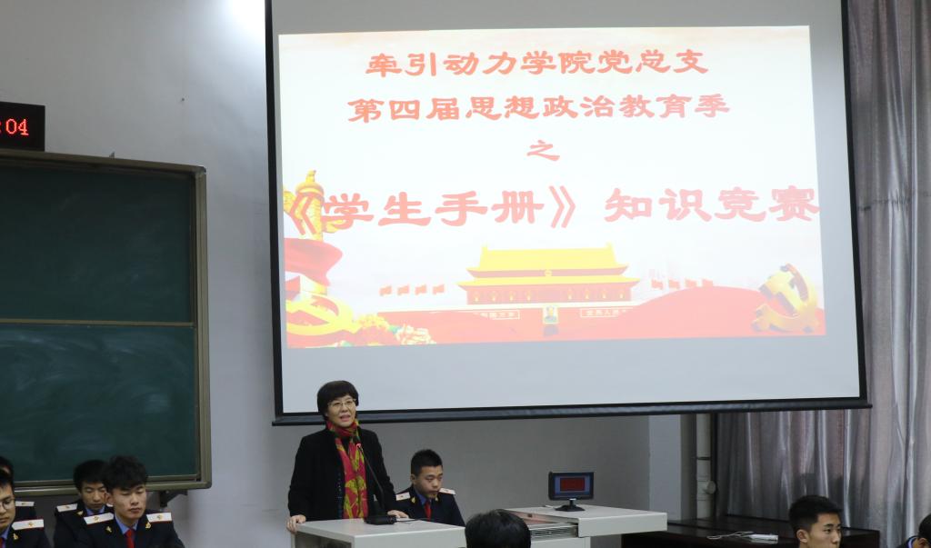 12月6日,牵引动力学院党总支举办了“第四届思想政治教育季之《学生手册》知识竞赛”活动。牵引动力学院党总支书记和晋秦、学工办主任王智敏、全体辅导员班主任以及学生代表200余人参加本次活动。