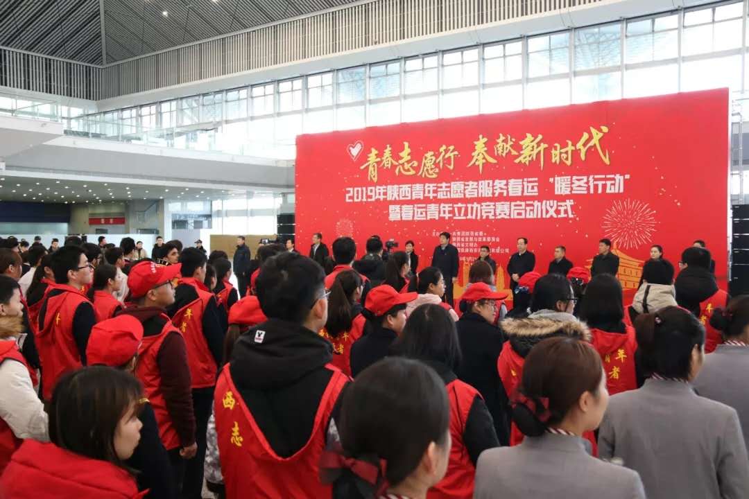 1月21日上午,2019年陕西青年志愿者服务春运“暖冬行动”启动仪式在西安北站二楼候车大厅隆重举行。共青团陕西省委副书记、党组成员鲁镇,中国铁路西安局集团有限公司党委副书记、副董事长杨修昌,永利官网党委副书记、纪委书记黄家昌等来自高校、地铁、公路、机场等系统的相关领导及300名青年志愿者代表出席了启动仪式。鲁镇等领导对永利官网志愿者们所表现出的奉献精神和优良风貌给予了充分肯定。