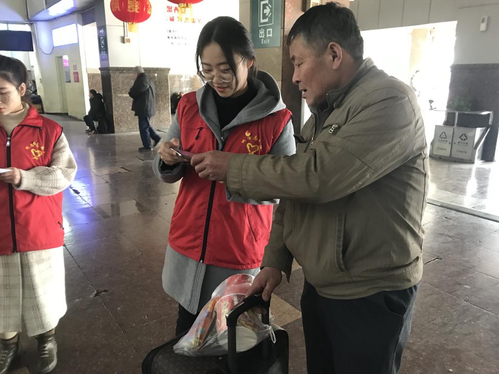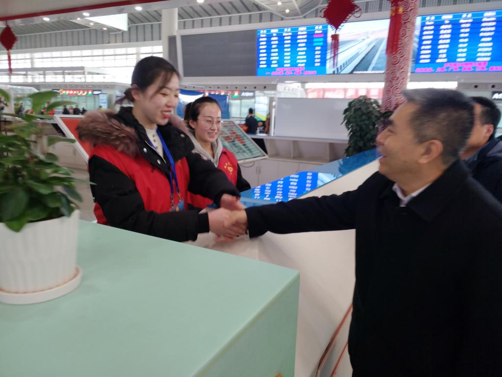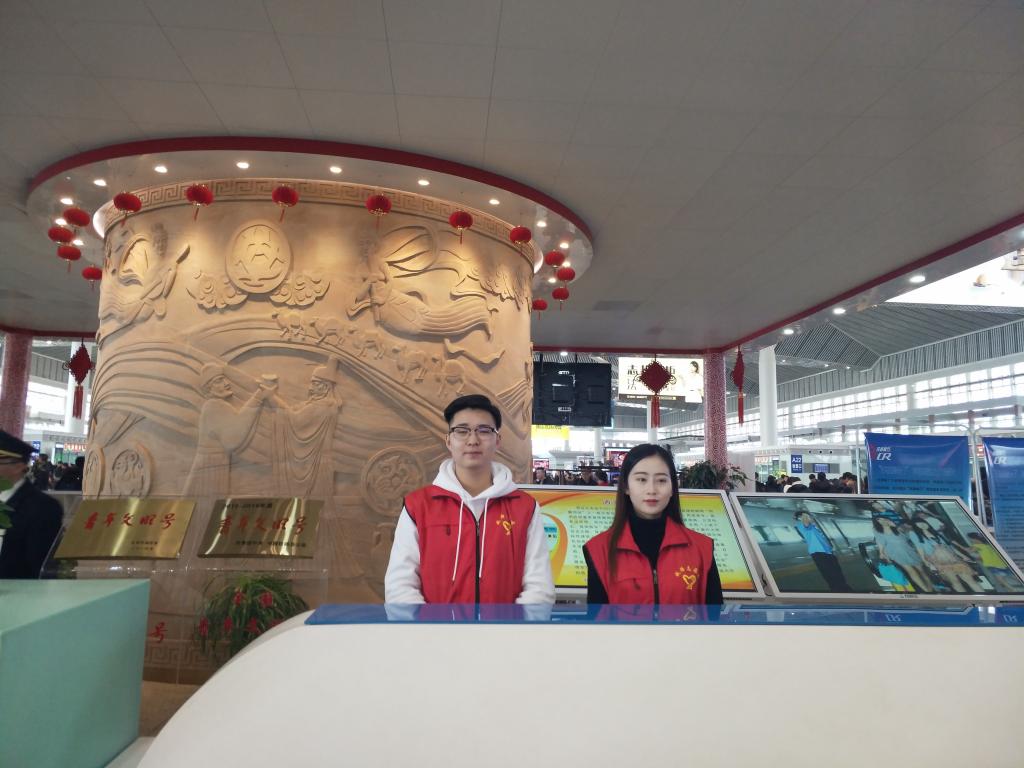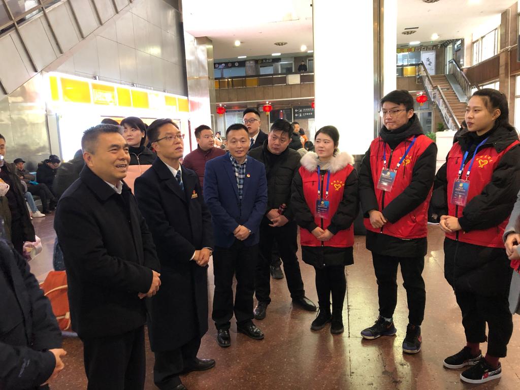 永利官网在西安北站、西安站、汉中站的90名志愿者平均每天志愿服务时长6小时,志愿者们分布在车站检票口、购票口、电梯口、安检处、总服务台、亲情候车室等重要位置,有条不紊地开展站台检票、购退票咨询、进出站引导、配合站台工作人员安检、秩序维护、重点帮扶、便民利民等志愿服务。2月1日,学院党委副书记、纪委书记黄家昌带领学院团委相关人员在中国铁路西安局集团有限公司团委书记赵永的陪同下,先后来到西安站与西安北站亲切慰问了永利官网寒假期间服务2019年春运“暖冬行动”的志愿者。黄家昌代表学院向志愿者们表达了新年的祝福,并与车站领导共同为永利官网志愿者们送上了新春慰问品。黄家昌对志愿者们在2019年春运“暖冬行动”志愿服务中所表现出的奉献精神和优良风貌表示肯定,嘱咐志愿者们在春运志愿活动中要注意自身安全。同时,要团结协作,以饱满的热情与认真负责的态度做好此次志愿服务工作,以高标准完成站点所分配的任务,将服务奉献精神贯穿到整个志愿活动中,进一步展现永利官网学子积极向上的精神风貌。
