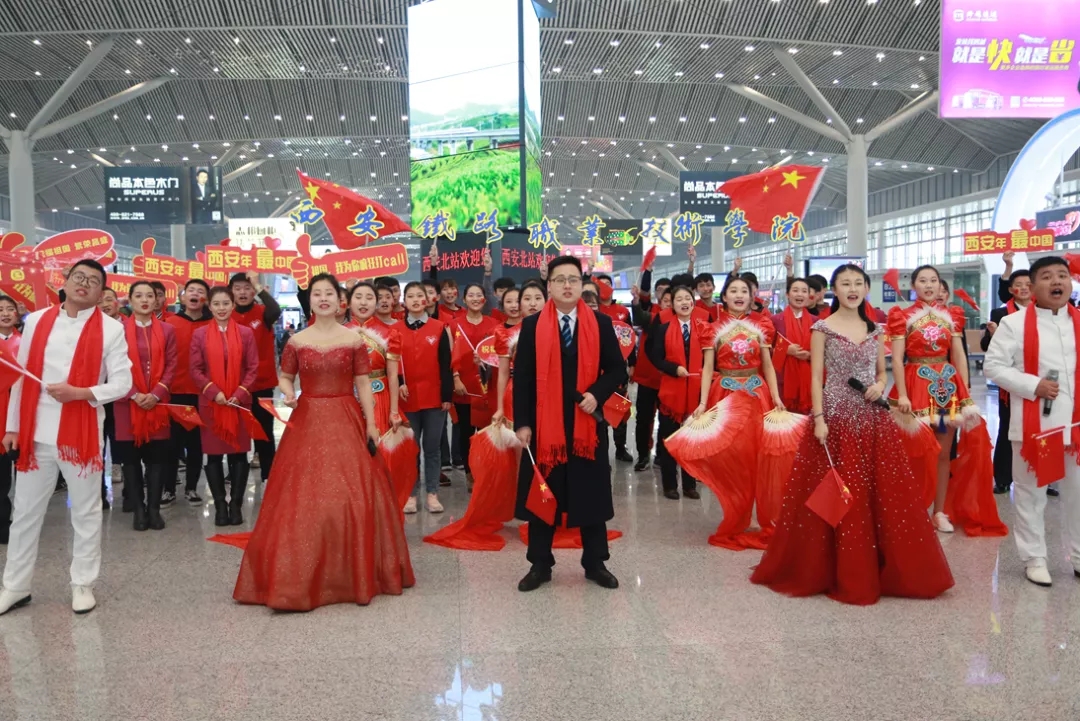 2月18日,院团委组织学院志愿者们在西安北站举行“西安年最中国 礼赞祖国70华诞”主题快闪活动,学院志愿者们与教师代表通过集体合唱、二胡演奏、舞蹈等形式共同祝福祖国70岁华诞,展现了永利官网青年师生为祖国繁荣富强、为大西安追赶超越而努力奋斗的坚定信念与理想追求。快闪活动得到了西安日报、凤凰网、中国教育新闻网等媒体的广泛关注与报道。