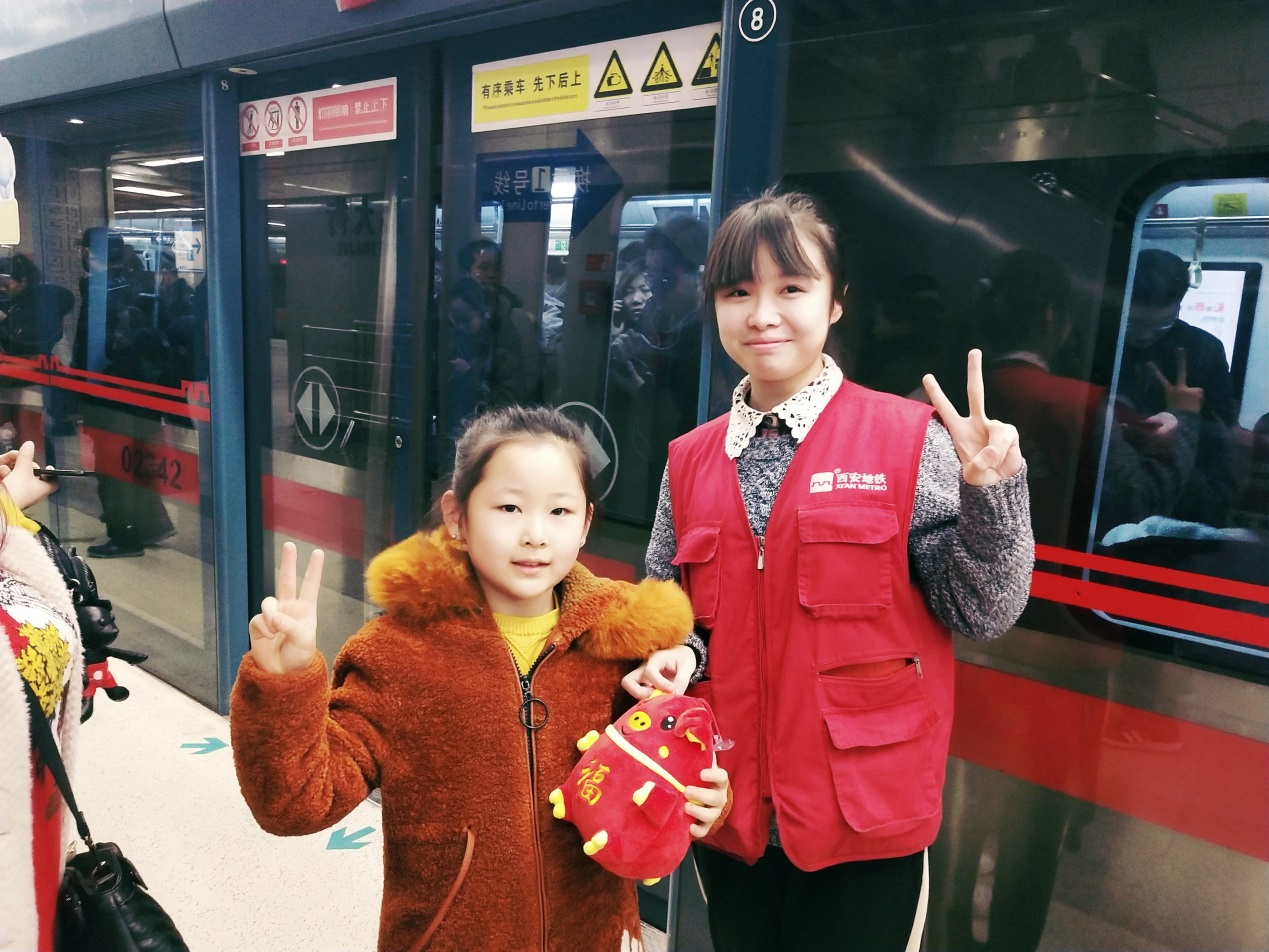 实习期间,她主要负责站台巡视及引导服务工作。良好的业务知识基础,让她在各岗位工作时能够临危不乱,冷静处理。无论遇到屏蔽门故障或是乘客事务,她都能不骄不躁,沉着应对。在站台岗期间,积极引导站台乘客前往人较少的车门,在安全区域排队候车,每次都能用标准的服务手势为乘客指路。看似简简单单的一句话、一个动作,在大客流情况下,她可能会重复成百上千遍,即便喉咙已经沙哑,身躯已经疲惫,她依然将最真诚的微笑献给乘客。
