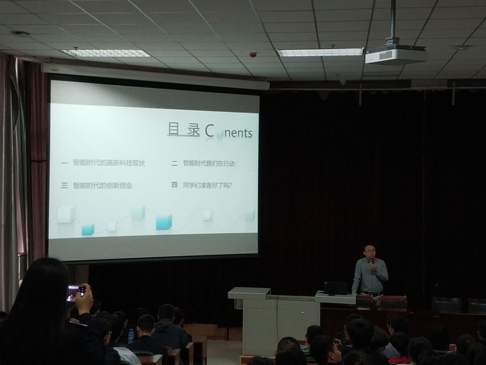 刘鹏从智能时代的科技现状和智能时代的创新与创业、以及他个人的经历这几方面向大家介绍了现阶段我国创新创业政策与环境,并分享了自己的创业故事。他希望在场的同学们能有所启发,有兴趣的同学积极锻炼自己的创新创业能力,要把个人成长与国家发展结合起来,把个人的理想追求与国家民族的奋斗目标结合起来,只有真正投身到基层去奋斗,才能实现自身的价值。
