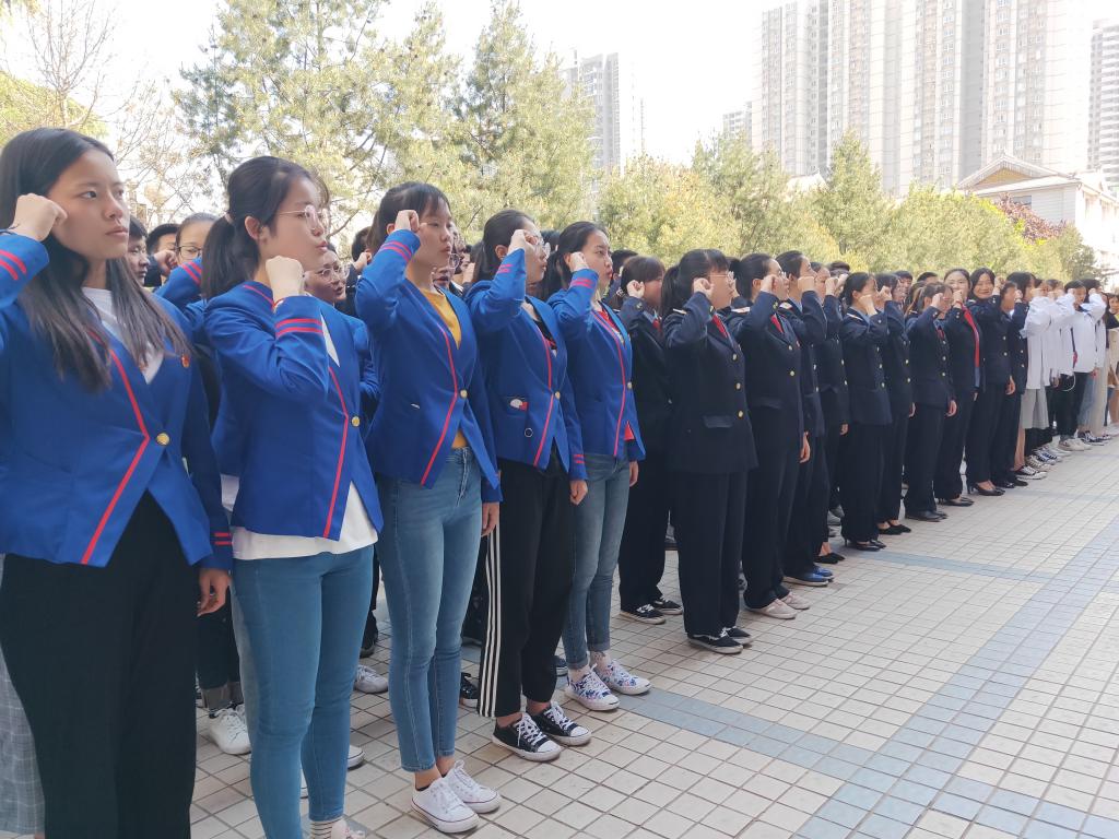 最后,在铁道运营1801班团支书张博文的带领下,现场全体成员举起右拳,庄严宣誓,慷慨激昂的誓词鞭策着在场每个人牢记:安全责任重于泰山。
