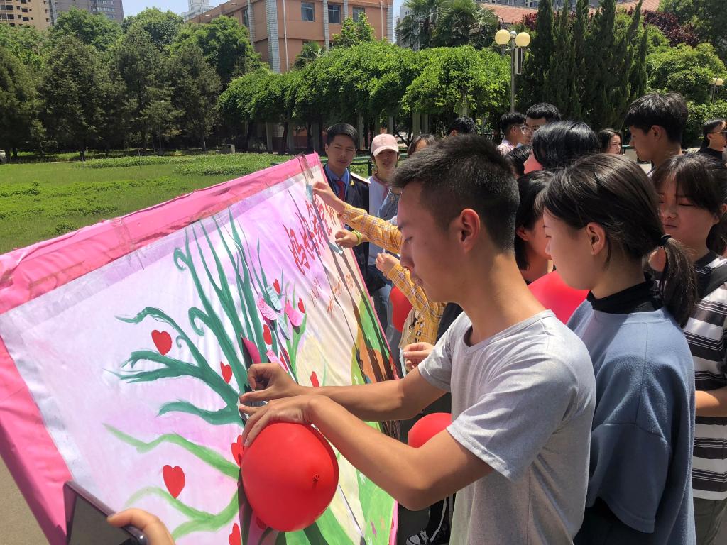 5月10日中午,在2019年母亲节即将来临之际,交通运输学院于自强校区詹天佑广场开展了“爱,就大声说出来”母亲节特别活动,向学生提供了向母亲大声说“爱”的机会和平台。本次活动是第二届“阅青春 悦心灵”心理健康教育季系列活动之一,活动旨在提高大学生感恩意识,用心灵感受感恩文化,培养学生感恩情感,践行感恩行动。上百名学生代表参加了此次活动。