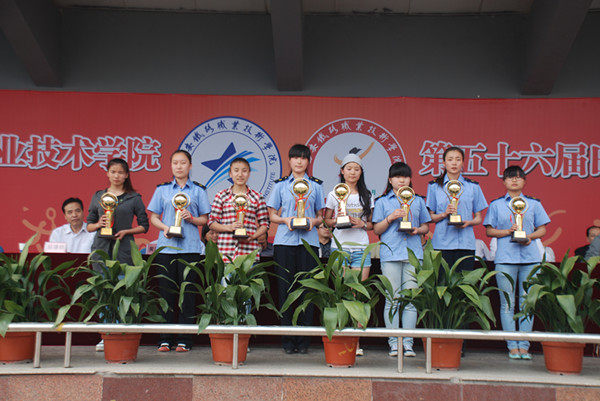 在本届运动会上,2000余名运动员参与了22个项目的预决赛,有3人次打破学校田径运动会纪录。总裁判长彭鹏老师宣布了本届田径运动会比赛成绩和获奖情况;学生处处长卢进安宣读了荣获“精神文明代表队”的班级名单。之后,在现场的欢呼声和欢快的乐曲声中,与会领导为获得精神文明代表队、男子团体前8名的代表队、女子团体前8名的代表队、男女团体前8名的代表队现场颁奖。