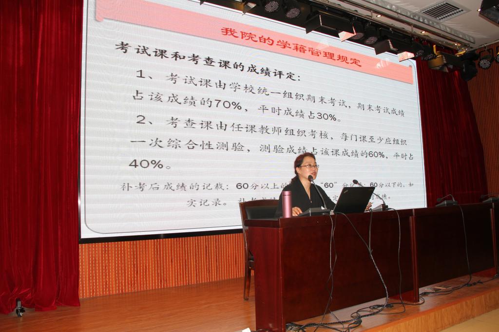 教务处综合科科长樊润慧从学籍管理名称术语、电子注册、学籍管理规定、教务管理、成绩资助打印等方面对学生进行了讲解。