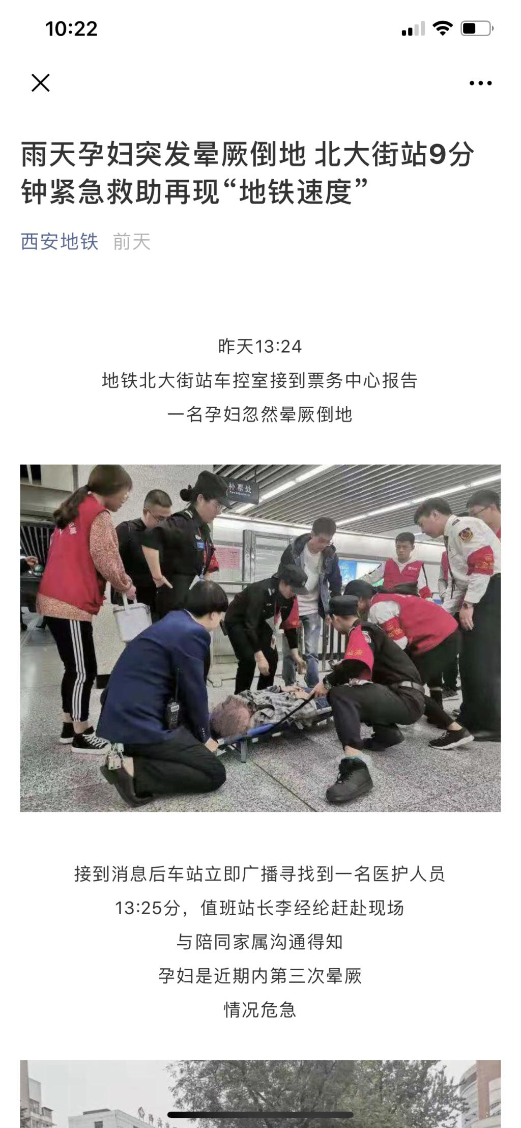 10月8日下午1点24分,西安地铁北大街站有一名孕妇突然晕厥倒地。在值班站长的带领下,304am永利集团官网实习生仅用9分钟将乘客安全送到医院,脱离了生命危险。