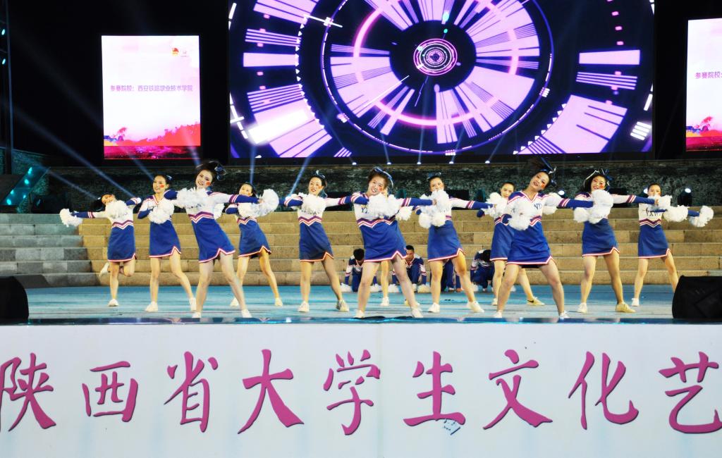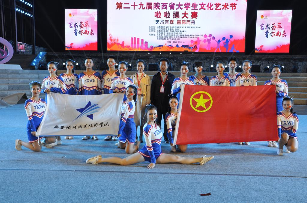 10月19日,第二十九届陕西省大学生文化艺术节啦啦操大赛在商洛市洛南音乐小镇举行。全省12支高校队伍代表在舞台上充分展现了新时代大学生的风采,为现场观众奉献了一场精彩的表演。永利官网参赛作品“花球啦啦操”经过初赛激烈角逐与专家的严格评审,进入大赛决赛,并最终获得全省九强的好成绩,赢得了评委和现场观众的一致认可。