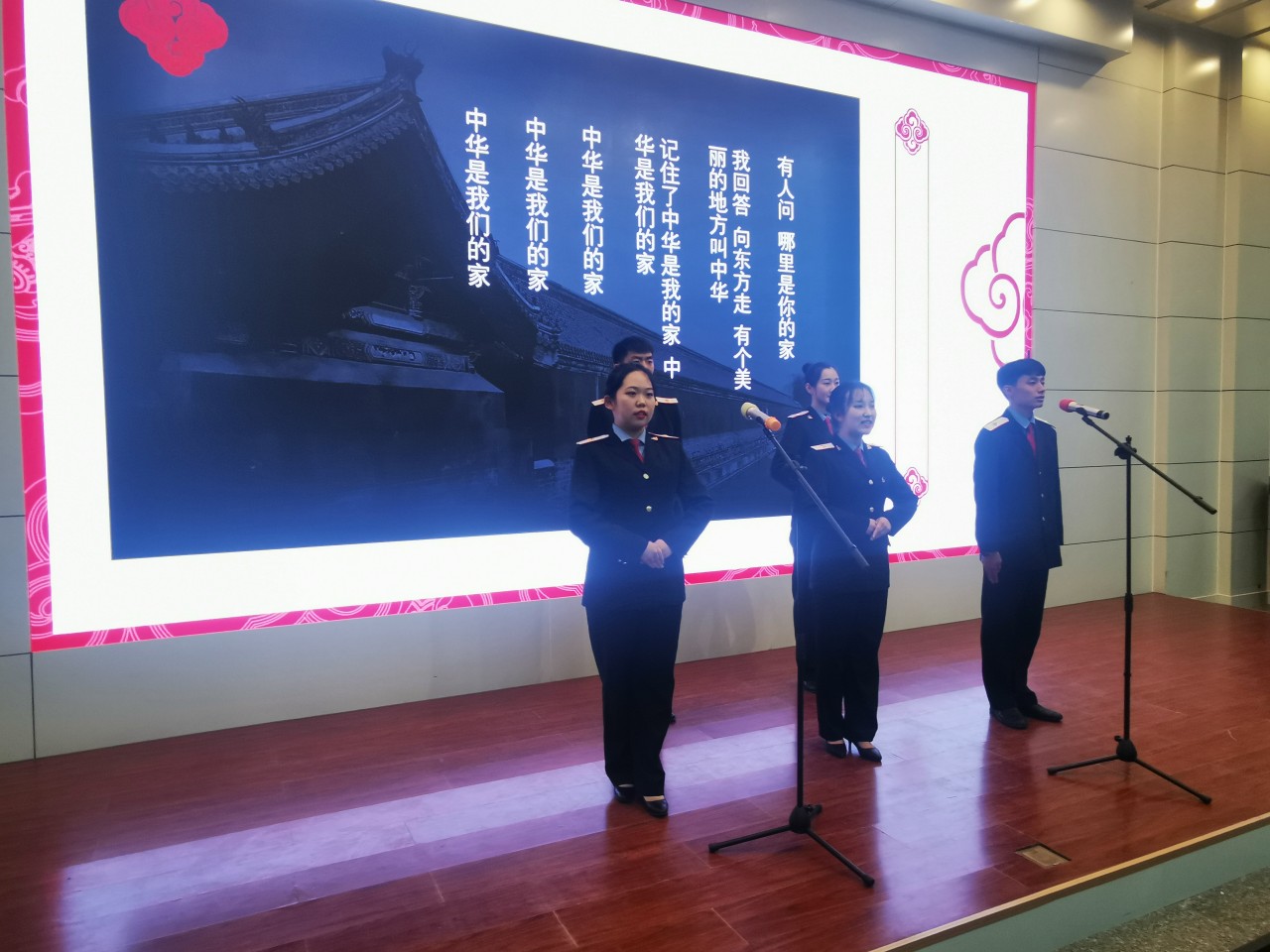 比赛中各参赛班级在优美音乐的伴奏下,朗诵时而低沉婉转、时而慷慨激昂、时而纯真热情。《青春中国》《祖国啊,我亲爱的祖国》《中华颂》《祖国,我爱你》《少年中国说》……一首首诗歌歌颂了伟大祖国走过不平凡的70年,诵出了对伟大祖国的赞歌,饱含着学生对祖国母亲的真挚祝福和无限热爱。《水调歌头》《永遇乐京口北固亭怀古》《破阵子·为陈同甫赋壮词以寄之》《将进酒》等古代诗词则带大家走进了古代文学的殿堂,共同欣赏了古诗的魅力和传统文化的博大精深。