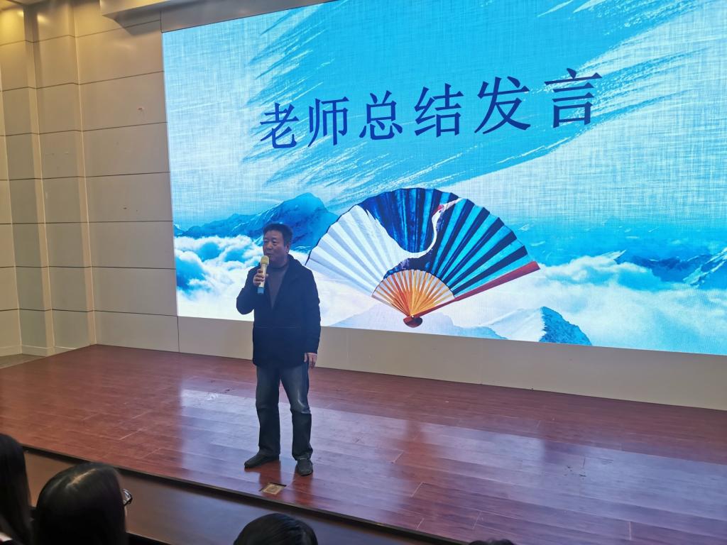 周海龙老师在比赛最后对本次活动进行了总结,他对诵读比赛辛勤付出的所有师生表示感谢,希望学生们可以多诵读经典,传承中华传统文化,培养浓郁家国情怀。