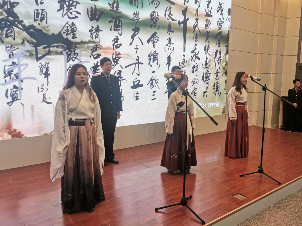比赛中,同学们以全新的诵读形式,训练有素的朗诵水平,富有表现力、感染力的表演设计,赢得了在场评委和师生的阵阵掌声,很好地展示了新时代青年的精神风貌。中华文化源远流长,中华诗文浩浩汤汤,跟随着这场比赛,在场观众仿佛在汉字织成的锦绣里穿行,在声韵汇成的长河中徜徉,一首首脍炙人口的诗歌,一段段动人心弦的朗诵,文化与传承就在这其中熠熠生辉,生生不息。