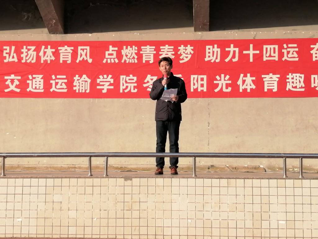 交通运输学院于12月2日在自强校区举办冬季阳光体育趣味运动会。交通运输学院党总支书记仵崇智、学工办主任孟永辉以及全体辅导员班主任老师参加活动,同时到场的还有大一大二各班同学千余名。