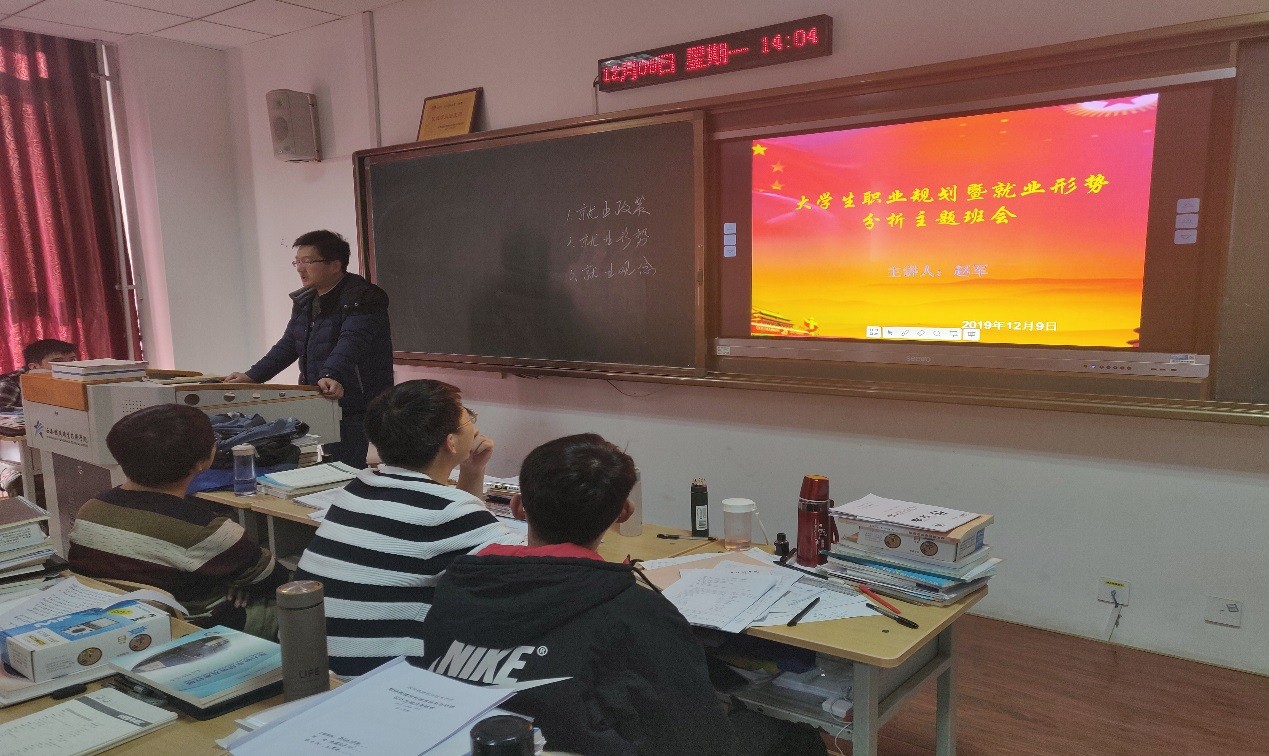 为了使牵引动力学院2018级学生在即将到来的就业应聘当中能取得理想的成绩,该院党总支组织2018级辅导员赵军、黄旌芮、高春鸿、杨若四位老师分别深入学生班级,召开“大学生职业规划暨就业形势分析”主题班会,帮助学生准确把握当前就业形势,制定适合自身发展实际的职业规划。