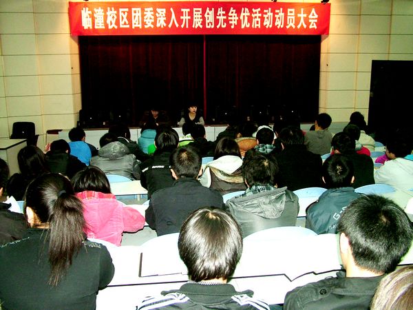 按照上级团组织和学院党委要求,有序推进永利官网团组织和团员青年的创先争优活动的开展,在院团委的统一安排下,12月7日中午,院本部、龙首校区和临潼校区同时召开了在全院团组织和团员青年深入开展创先争优活动动员大会,对活动进行动员和部署,标志着永利官网在团组织和团员青年中深入开展创先争优活动全面启动。院本部、龙首校区、临潼校区,共有近600余名团员青年参加了动员大会。