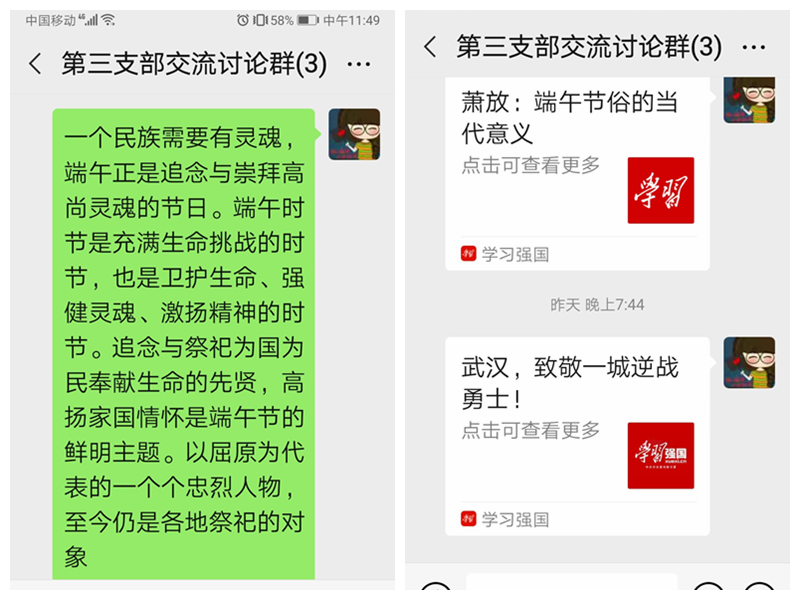 6月22日,牵引动力党总支教学一支部组织党员开展“我们的节日—端午”抗疫精神宣传活动。教学一支部党员通过“抗疫英雄事迹分享会”“最美逆行者故事会”等形式,要求党员要以英雄为榜样,结合当前疫情严峻形势,确保开学后的教学课程内容衔接,确保同学们顺利进行和完成学业。