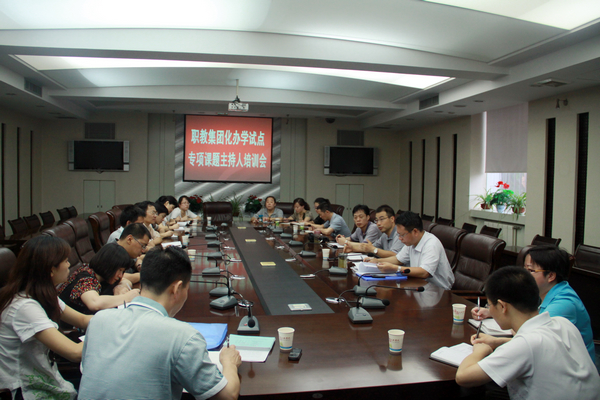 7月9日,学院召开2012年度专项课题主持人培训会,对永利官网承担的“省教育厅职业教育集团化办学试点” 两个子项目研究工作开展的内容、方向、完成时间及成果形式作了统一要求。参加培训会的课题主持人有李益民、代礼前、赵景民、张玮、申红、刘奇、柯伟等。培训会由教科研处处长滕勇主持,部分参研人员也一同参加了培训。