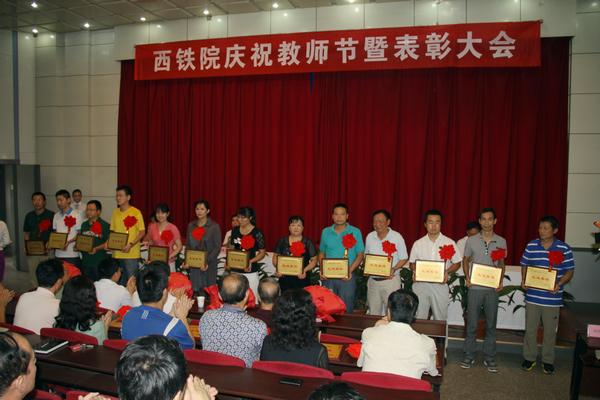 安文中同志首先向受到表彰的先进集体和先进个人表示祝贺,向广大教职工致以节日的祝福和崇高的敬意,向多年来支持学院发展的西安铁路局、西安地铁公司表示诚挚的谢意!对学院近几年的工作进行了总结回顾,并对落实上级有关精神和学院重点工作提出四点意见,一要以强烈的使命感,抓好质量工程建设,培养出更多更好的专业技术人才,更好地服务于国家和地方经济建设;二要以高度的责任心,做好教书育人工作,善于思考、不断创新,敬业爱岗,严谨治学,关心学生,因材施教;三要以深切的关爱情怀,抓好学生服务与维稳工作,抓好学生形势政策教育和正面引导,为十八大胜利召开营造良好环境;四要以强劲的执行力,完成好全年目标任务。继续深入开展基层组织建设年活动,完成示范建设第二阶段检查验收任务,努力完成2012年市级目标责任和重点任务,力争在市目标任务综合考评中取得优异成绩。