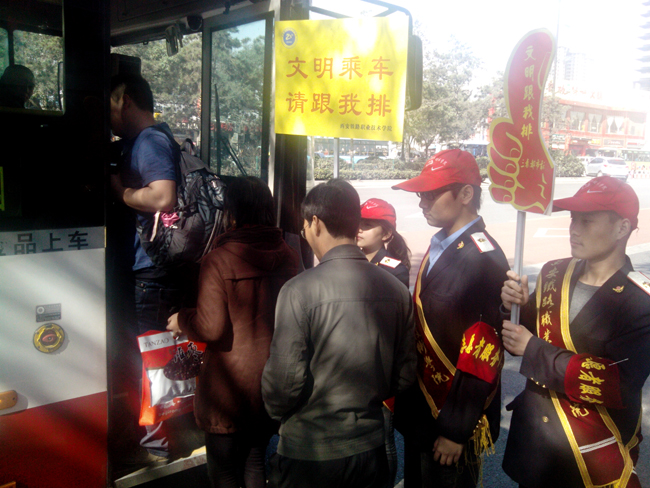 志愿者们用自己最高涨的服务热情,温暖着身边的乘客,礼貌的引导乘客上车:“大家好,我们是304am永利集团官网的青年志愿者,为了您的乘车安全,请自觉排队、按顺序依次上车”。志愿者们不断的温馨提示使乘客们自觉形成乘车队伍,原本较为混乱的乘车站点顷刻间就变得井然有序,志愿者们用热情周到的服务,为西安“缓堵保畅 低碳出行”提升城市形象做出了奉献。向社会展现了永利官网大学生良好的精神面貌和较高的文化素养,为学院赢得了良好的社会声誉。