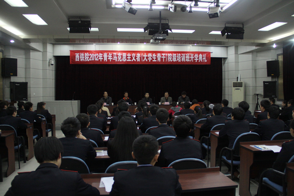 11月19日下午,西铁院2012年青年马克思主义者(大学生骨干)院级培训班开学典礼在实验楼二楼大电教隆重举行。学院党委副书记纪委书记黄家昌、党委组织部部长任治军、思政教科部主任景延鹏、学生工作部副部长任建立等同志出席了开学典礼,典礼由学院团委书记仵崇智主持。