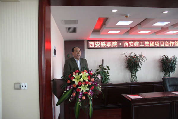 市政府咨询员、西安建工集团董事长杨广信发表讲话。他指出,西安建工集团与铁职院成功签订新校区建设项目合作协议,这对于加快西安市国际港务区教育发展、提升港务区教育活力具有重要意义,双方的合作将是一次双赢选择。他希望合作双方要在诚信合作、共谋发展的基础上,积极探索一种政企合作、共建民生、共同发展的新模式、新路子,建立联动机制,加强沟通与协调,扎实推进各项工作,把合作的各个建设项目进一步落到实处。他要求建工集团要充分发挥资源和产业链优势,发扬能打硬仗、善打硬仗的优良传统,立足于精品工程建设,严格执行相关技术标准和规范,着力做到高品质施工、高水平建设、高质量管理,着力打造西安建工新品牌、倾力塑造西安建工新形象。