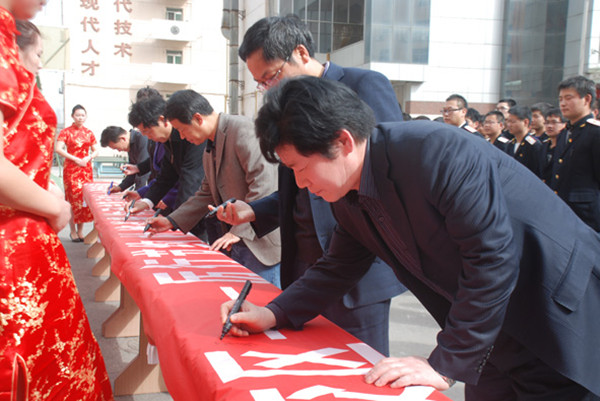 3月6日下午,龙首校区全体学生举行了“美丽西铁院 文明伴我行文明礼貌卫生活动月启动仪式暨厉行勤俭节约反对铺张浪费”的签名活动。校区主任吴领合、党总支书记郭小莉、副主任孙明魁、马建萍、学院思政部主任景延鹏、学院继续教育学院院长司西平、副院长许晓华、学工办主任高阿联和全体辅导员班主任参加了活动。活动由校区团委书记李妮主持。