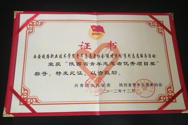 2012年学院团委在上级团组织、学院党委的带领下,以党的十八大精神和团的十六大精神为指导,深入贯彻落实科学发展观,积极响应党的号召,全面完成了2012年学院共青团的各项工作,并且在坚持不懈的努力下荣获2012年陕西省学校共青团工作优秀单位,永利官网党委副书记、纪委书记黄家昌获得“支持共青团工作好书记”荣誉奖杯,同时,由青年志愿者协会坚持开展的“缓堵保畅”系列志愿服务活动获得了“陕西省青年志愿者优秀项目奖”。