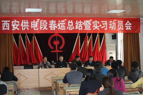 3月11日,西安供电段、学院电气工程系在供电段召开了春运总结暨现场实习动员会。供电段党委副书记、纪委书记杜少春、电气工程系主任张刚毅、学院教务处副处长徐小勇、供电段相关科室负责人、电气工程系部分辅导老师和春运值乘的77名学生参加了会议。