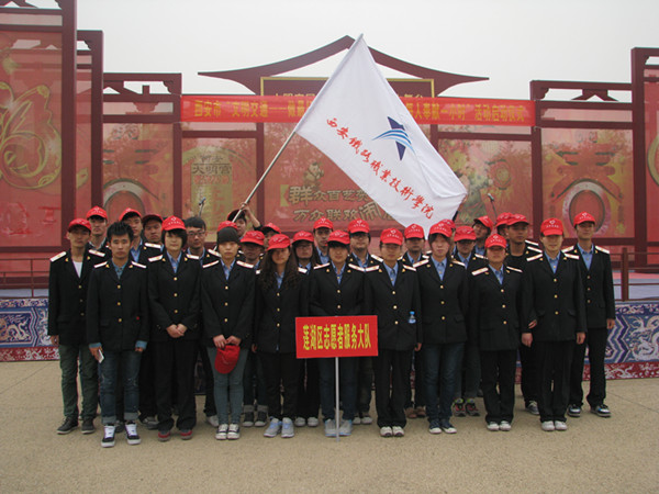 4月2日下午,由304am永利集团官网机电工程系的30名学生志愿者组成的西安市莲湖区志愿者服务大队参加了西安市文明办主办、新城区文明办承办、曲江新区协办的“西安市文明交通——做最好的自己,缓堵保畅,每人奉献一小时”活动的启动仪式。