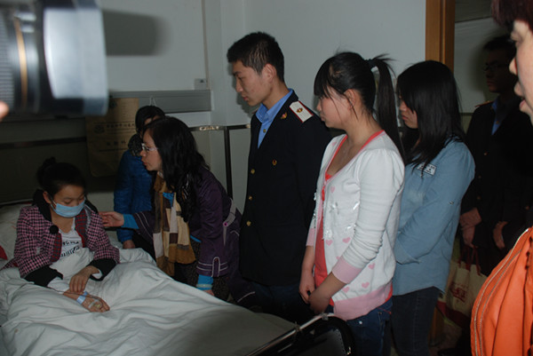 早在二月底的时候,永利官网321434班学生陈璐、赖书香在华商论坛上看到了一则写着《佛坪正能量,救助吕茜行动》的帖子,因为同是汉中人,所以开学报到后,就到医院看望了吕茜,得知她家境贫困,医药费全靠社会捐助时,回校后便发动身边的同学一起捐钱、捐物,其中322831班的李飞同学还一次性捐献了400cc的血小板。当学工办接到吕茜家长送来的感谢信时才获知此事,于是辅导员们纷纷奉献爱心,当时就将1300元善款交给家长。