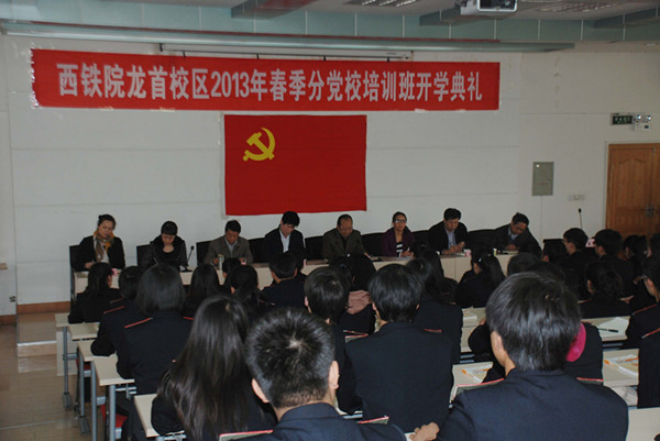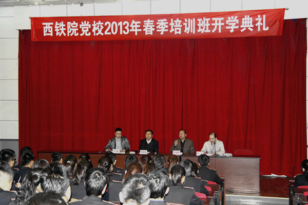党委副书记、纪委书记兼党校校长黄家昌,组织部部长兼党校副校长任治军,分党校校长李栋、张伟敏、任建国、和晋秦、张雅兰、郭小莉、张国邦等同志参加了开学典礼。开学典礼上各分党校校长宣读了西铁院党校《学员管理办法》和学院党校2013年春季培训班课程安排。
