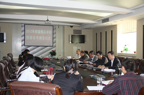 在课程评审前,对2012年院级精品课程团队颁发了证书,教务处处长滕勇宣读了《关于授予<移动通信设备运行与维护>等7门课程为院级精品课程的决定》,副院长邓耀斌对课程组颁发了证书并讲话。
