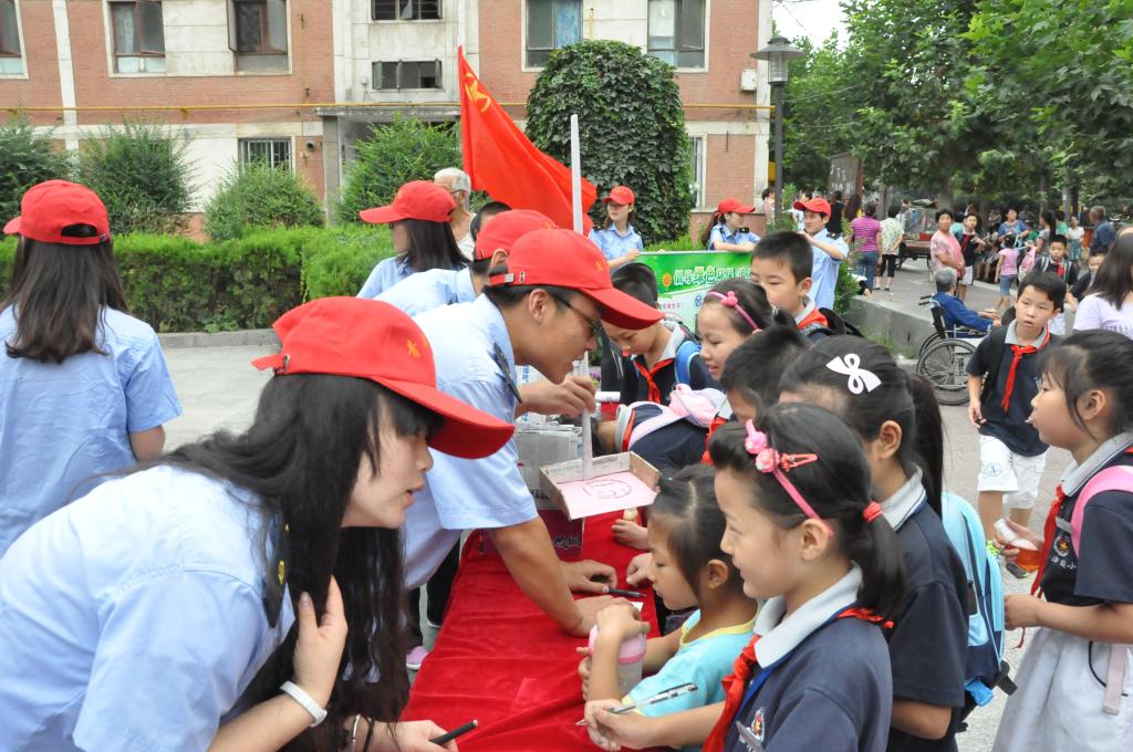 二是学生干部20余名组成环保志愿活动队,走进社区广场开展了以“倡导绿色环保、追求低碳生活”为主题的环保宣传活动。以宣读倡议书,展示环保小制作,对废电池回收、生活垃圾分类以及变废为宝为环节进行了环保知识讲解及宣传。此项活动提高了学生们的动手能力,使绿色低碳的生活理念传递给更多的社区居民。