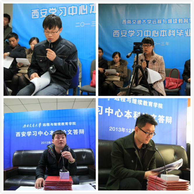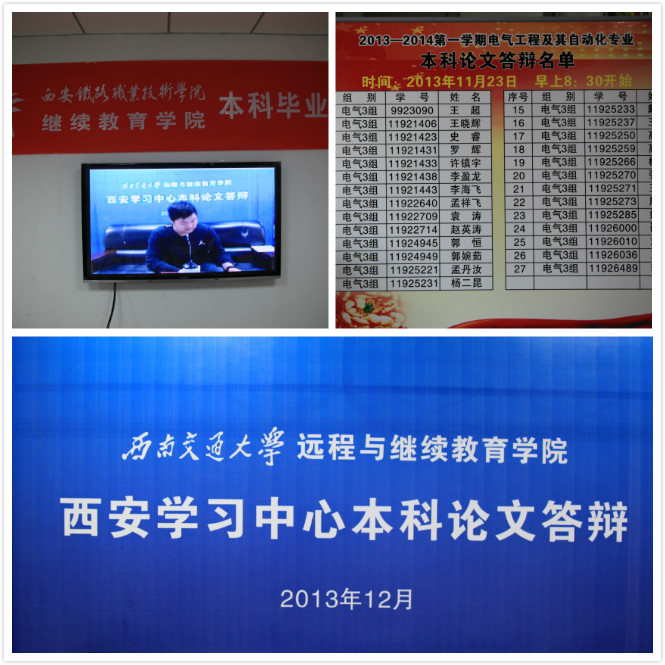 根据西南交大网络教育学院2013年秋季教学工作的安排,2011届秋季西铁院学习中心本科毕业论文答辩工作从11月23日持续至12月15日,为期八天。本次答辩有交通运输,电气工程和计算机等六个专业共120名学生参加,人数创历年之最。答辩委员会由西南交大专家教授答辩组组成。