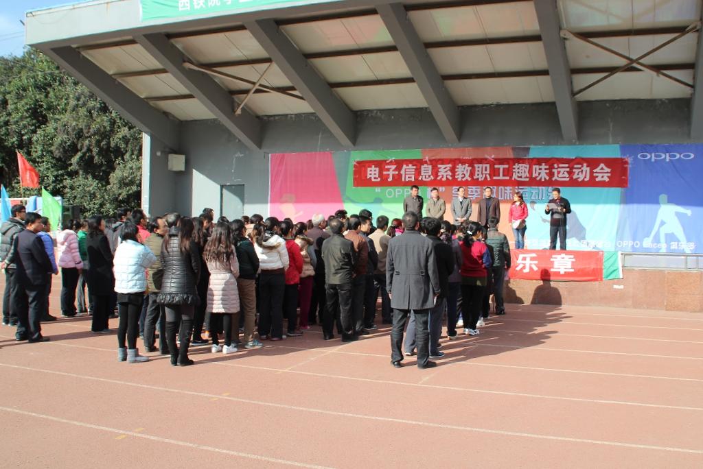 11月27日下午,电子信息系在学院运动场举办了2013年“阳光体育第二届教职工趣味运动会”。学院党委书记安文中、院工会副主席同颖葵、党办主任张爱民、宣传部部长张家琪出席开幕式,电子信息系党总支书记张伟敏致开幕辞,开幕式由系办副主任马荣主持。