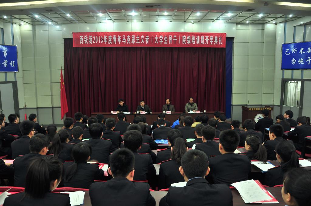 12月4日下午,西铁院2013年青年马克思主义者(大学生骨干)院级培训班开学典礼在阶梯教室隆重举行。学院党委副书记、纪委书记黄家昌,党委组织部部长任治军,学生工作部副部长任建立,院团委办公室、各系团总支书记出席了开学典礼,来自学院团委、学生工作部、各系团总支、学生社团推荐的优秀学员共81人参加此次开学典礼,典礼由学院团委书记仵崇智主持。