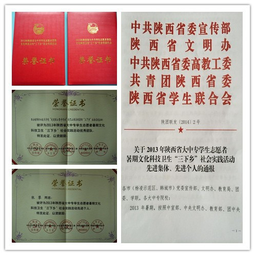 近日,由陕西省委宣传部、陕西省文明办、陕西省委高教工委、共青团陕西省委、陕西省学生联合会向有关部门联合发出《关于2013年陕西省大中专学生志愿者暑期文化科技卫生“三下乡”社会实践活动先进集体、先进个人的通报》(陕团联发[2014]2号)。本次表彰中由永利官网组织的“走进深山 坚守行业”赴巴山服务团获得2013年陕西省大中专学生志愿者暑期文化科技卫生“三下乡”社会实践活动优秀团队。永利官网牵引动力系学生张攀获得2013年陕西省大中专学生志愿者暑期文化科技卫生“三下乡”社会实践活动先进个人。