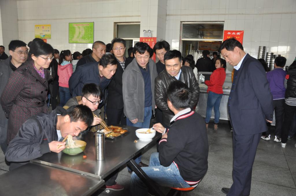 黄家昌一行在校区领导班子的陪同下,视察走访了学生公寓和食堂、教职工餐厅、教学实训演练场及计算机房等场所。黄家昌与教职工亲切交谈,了解工作和生活情况;向学生问寒问暖,了解食宿和学习情况,对校区各项工作进行了全面检查。