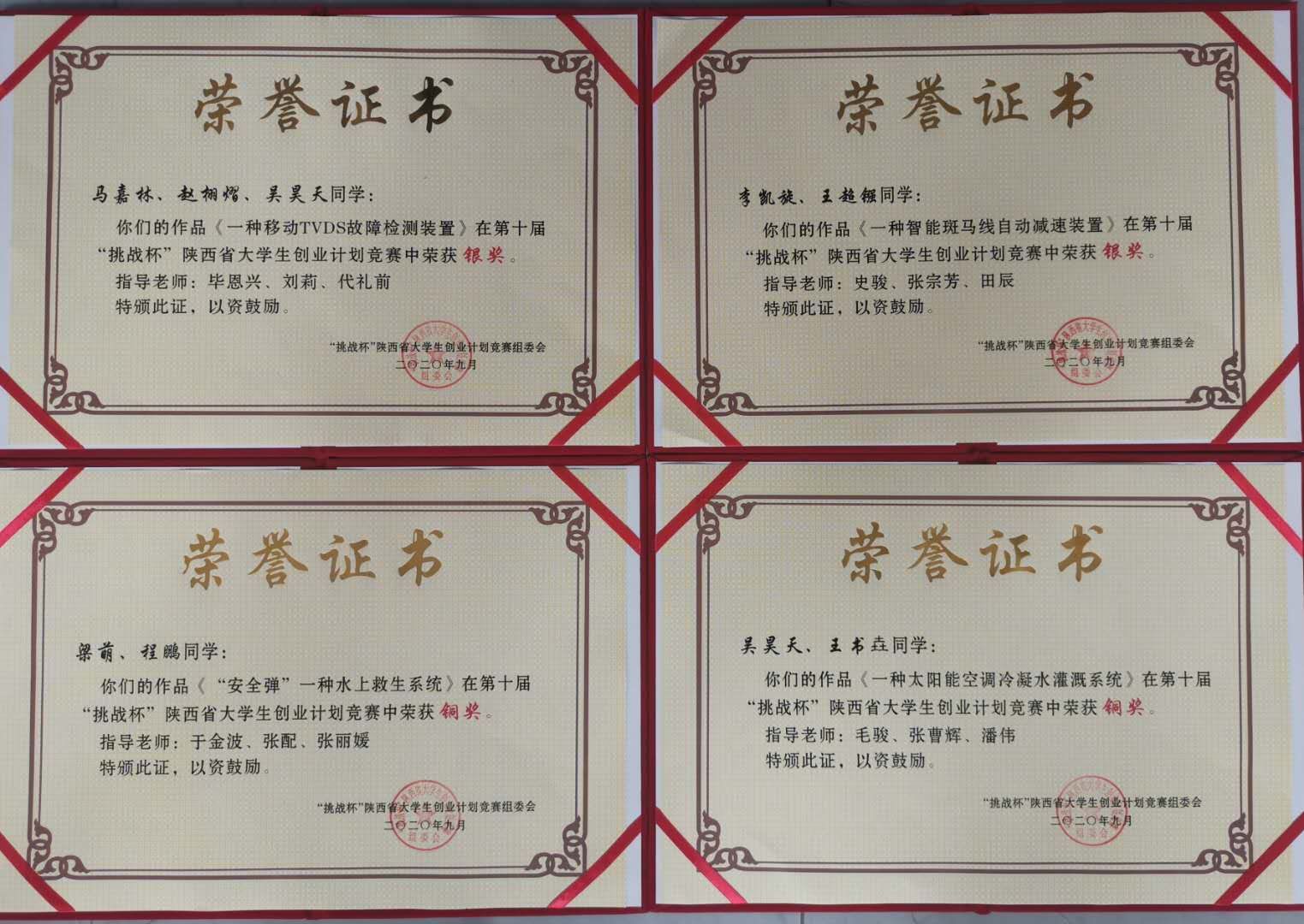 9月11日,由共青团陕西省委、陕西省委教育工委、陕西省科协、陕西省社科院、陕西省学联等共同主办的第十届“挑战杯”陕西省大学生创业计划竞赛闭幕式暨颁奖仪式在西安翻译学院举行。学院团委副书记李妮、项目指导老师及获奖学生代表参加仪式。永利官网在本次大赛中获得一项金奖,两项银奖,两项铜奖的优异成绩,同时学院荣获“优秀组织奖”,成绩在全省高职院校中名列前茅。