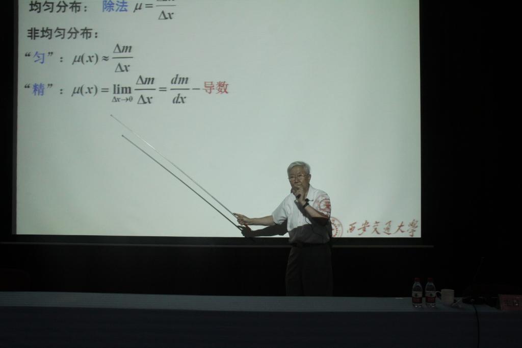 在谈到人才培养时,马教授指出,优秀的教师不仅要讲清知识,更应着力于去向学生揭示那些“火热的思考”,引导学生去发掘和领会那些“火热的思考”。那些“火热的思考”的积累,就是学生创新思维的基础,而学生发掘和领会那些“火热的思考”的能力,就是学习能力的核心,也就是他们将来创新能力的重要组成部分。马教授用自己毕生钟爱的教鞭,结合现代化的PPT技术,演绎了一次集“编、导、演于一身”的高等数学“细棒的线密度与质量”10分钟示范教学。马教授精妙的设计、流畅的讲解令在场各专业老师深受启发。