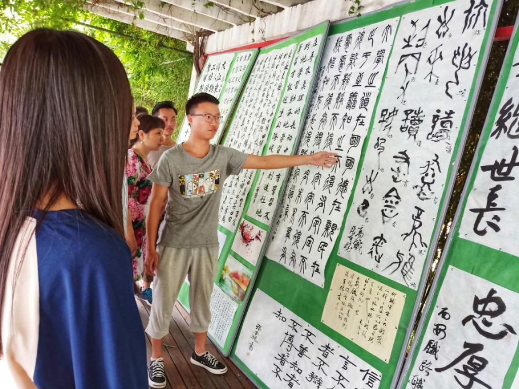 翰墨书法社张本胜本着对民族优秀文化传承和对书法的热爱,将参展书法作品的笔法、线条、布局和意境给大家详细讲解。