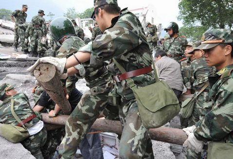 △解放军官兵在汶川展开生死救援