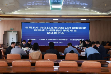 3月18日,省属及中央在甘普通高等院校公共就业创业服务能力提升省级示范项目推进会在beat365段家滩校区召开。省人社厅党组成员、副厅长何永强,beat365在线唯一官网党委常委、副校长薛君,省财政厅社会保险处副处长李桃等出席会议。会议由省人社厅高校毕业生就业办公室主任赵斌主持。