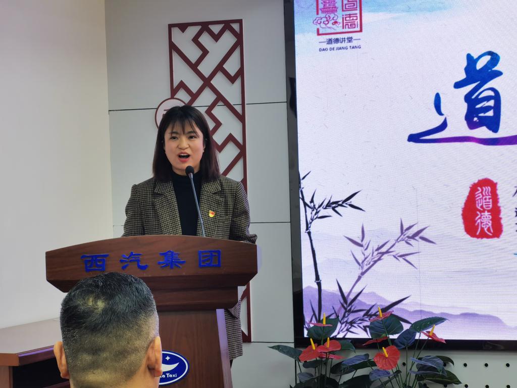 参观完毕,永利官网师生观摩了西汽集团疫路故事主题道德讲堂。窦琳娜通过行崇德礼、唱道德歌曲、诵读经典、讲好人故事、谈感悟、自我反省、做承诺、送吉祥等八个环节使师生们领略了出租集团党建品牌雷锋车队在抗击新冠疫情期间的感人故事,他们勇当先锋,敢打头阵,逐光逆行,用自己的善举温暖了整个城市。在“谈感悟”环节,“新时代”学习社社员任涛和赵洁婴从与出租车司机的渊源讲起,表示今天的参观学习是一堂生动的思想政治教育体验课,通过活动他们感受到了平凡岗位上的雷锋精神,更感受到了出租车司机的家国情怀,这种精神将激励他们奋发学习,早日报效祖国。