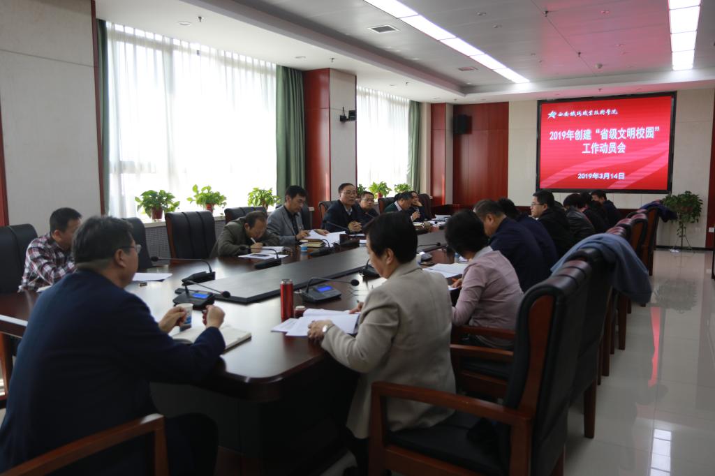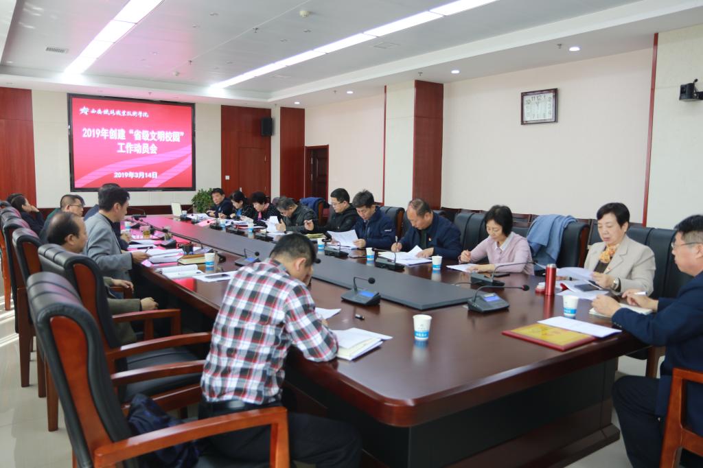 3月14日,学院召开2019年度创建“省级文明校园”工作动员会。学院文明办、各院部党总支书记以及任务责任部门负责人参加会议。学院党委副书记邓耀斌主持会议并讲话。