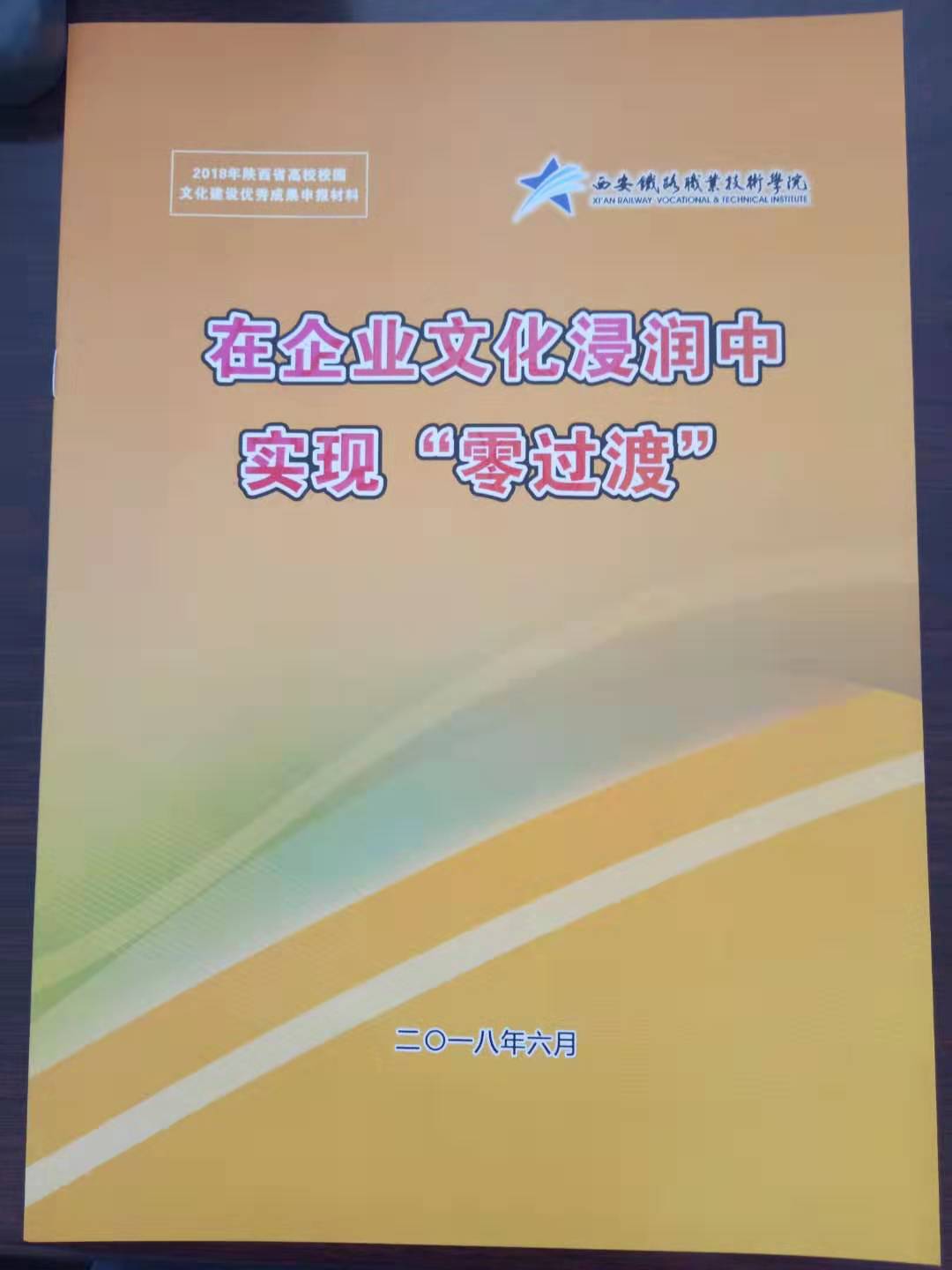 2018年,学院党委宣传部结合学院“三年行动计划”和“内部质量诊改”相关工作安排,加强了企业文化与校园文化的深度融合,开展了一系列“企业文化进校园”活动。先后邀请天津铁职院原党委书记王庆刚来院作王梦恕院士事迹报告会、邀请西安机车检修段段长李西平来院作《问渠那得清如许?为有源头活水来——在青工培养方面的一些探索》报告会,组织处级以上干部赴西安机车检修段参观学习,开展“企业文化进校园优秀案例征集评选”等活动,牵头引领了学院的校园文化建设方向。