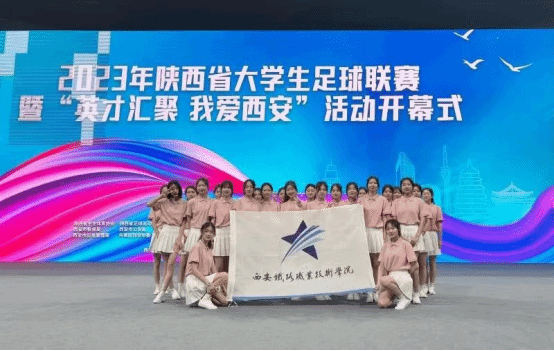 4月26日上午,由省教育厅、省体育局、团省委和西安市政府共同主办的2023年陕西省大学生足球联赛暨“英才汇聚 我爱西安”活动开幕式在西安奥体中心隆重举行。学院33名大学生志愿者圆满完成开幕式参赛院校运动员入场引导等礼仪服务任务。