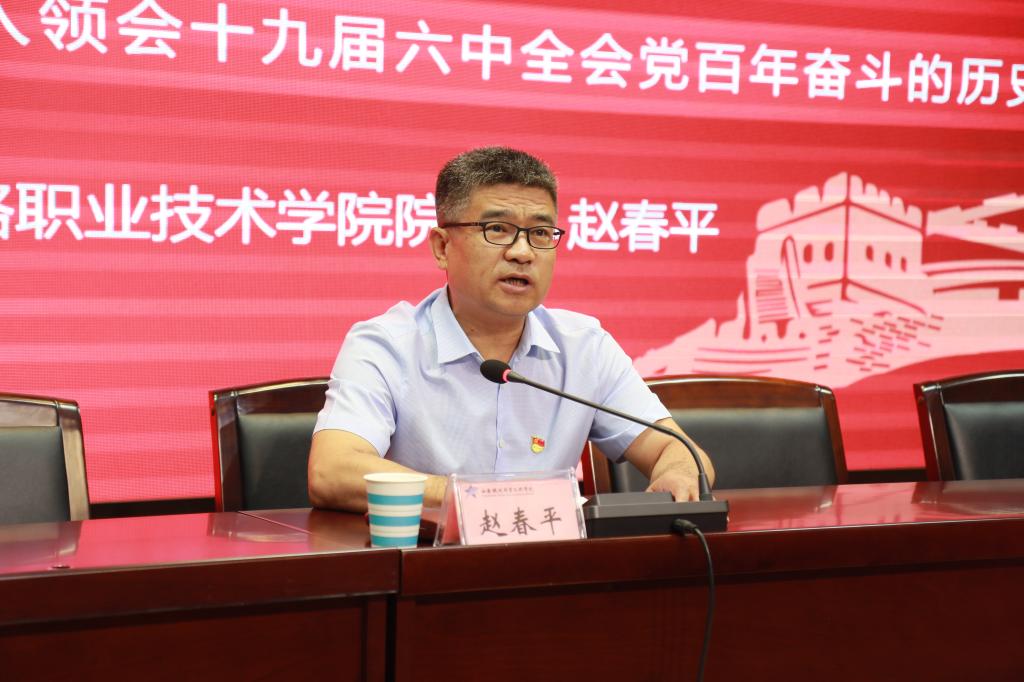 在庆祝建党101周年之际,6月17日,学院院长赵春平在港务校区办公楼一楼报告厅为广大师生讲授了一堂题为“学习百年党史经验,汲取砥砺奋进力量”的思政课,200余名师生代表现场聆听。