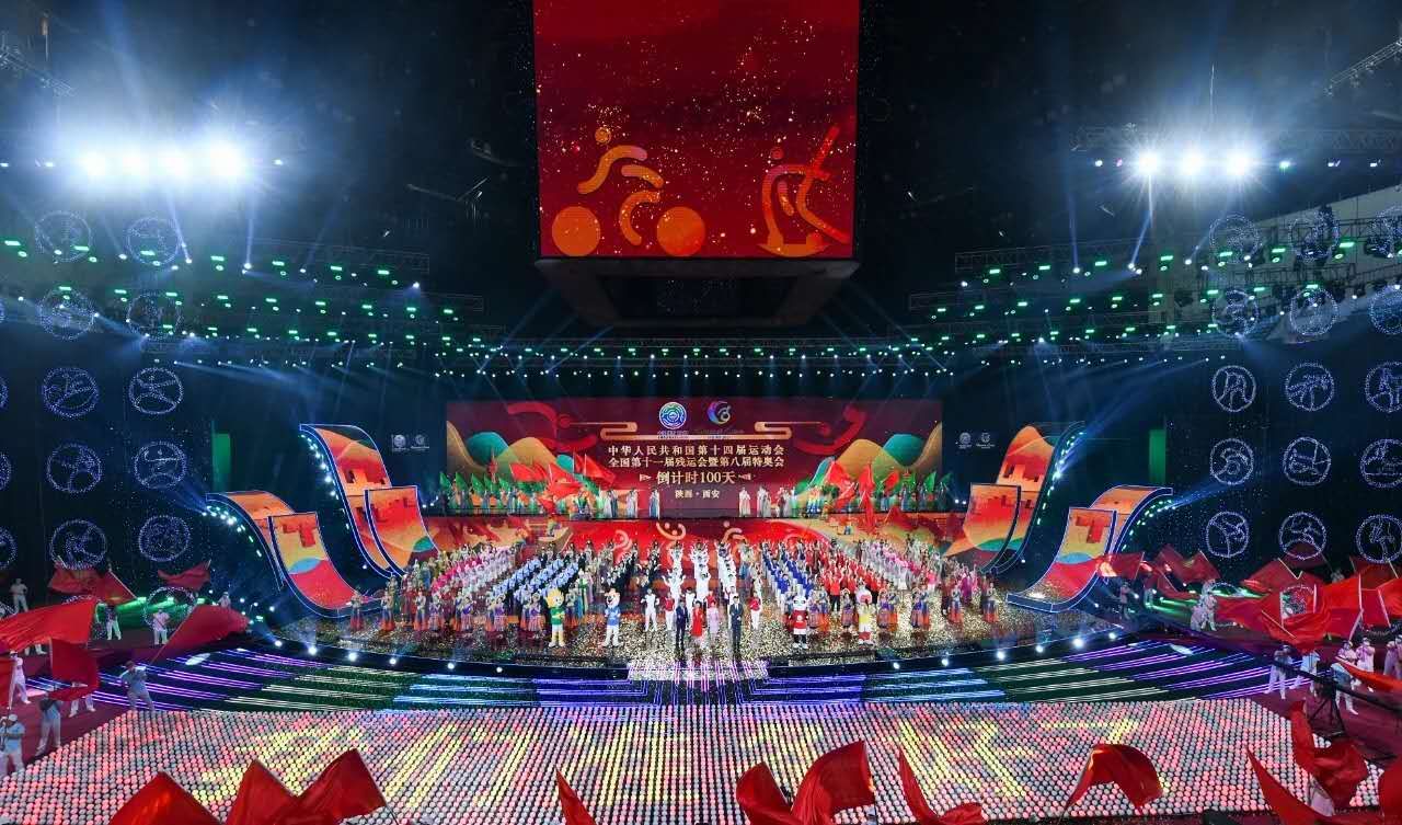 6月7日晚,中华人民共和国第十四届运动会、中华人民共和国第十一届残疾人运动会暨第八届特殊奥林匹克运动会倒计时100天活动在西安奥体中心举行。国家体育总局局长苟仲文、中国残联理事长周长奎、省委书记刘国中、省长赵一德共同启动了十四运会和残特奥会火炬、奖杯、奖牌、颁奖礼仪服装发布装置。刘国中讲话。赵一德为誓师方阵代表授旗。省委常委、西安市委书记王浩致辞。学院青年学子作为唯一一所高校的内场互动观众参与十四运会和残特奥会倒计时100天活动。